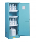 用于存放腐蝕品的Justrite藍色鋼制安全柜所有型號均具有與Justrite易燃液體安全柜相同的性能,包括雙壁結構、雙排氣口、地線接口、可調擱板、防漏底框、三點聯動式自鎖門和調平支腳。為具有耐強腐蝕性化學品的性能,酸類安全柜還在鍍鋅鋼擱板上安裝了聚乙烯底盤,并在底部盛漏槽中加設了獨立的聚乙烯襯套。襯套可拆除,便于清理滴落和泄漏的液體。內外壁全部采用環氧粉末烤漆涂層,具有更強的耐化學腐蝕性。該涂料經過專門配制,能夠耐受實驗室常用的酸、堿和溶劑。通過FM認證。