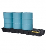 EcoPolyBlend? 溢出物控制托盤由100% 再循環壓模聚乙烯制成,可防止絕大多數危險性酸、堿和溶劑的泄漏,并且在惡劣環境中耐劣化性極強。是110 和200 升的圓桶或保存在室內的其他容器的理想平臺。無縫結構,即使200 升圓桶出現故障,其內容物全部傾出的情況下,也能夠避免泄漏。超大尺寸的溢出物盛漏托盤滿足或超出最苛刻的溢出物控制標準。自定位式格柵可快速取下以進行清理。黑色可隱藏污垢和灰塵,使您的工作場所看起來干凈衛生。有方形和狹長形兩種外形選擇。大型盛漏托盤(非再循環材料)有兩種尺寸,即1 桶裝或4 桶裝規格,設計滿足需要更大盛漏容量的要求。我們也提供黃色非再循環盛漏托盤。