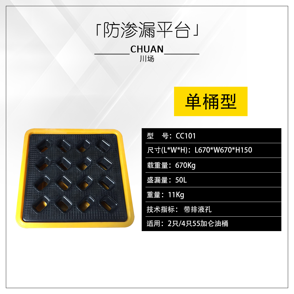 *主體材質:線性低密度聚乙烯,具有良好地耐酸堿腐蝕的材質,杜絕化學品泄漏時所可能產生的危害,可在戶外使用;