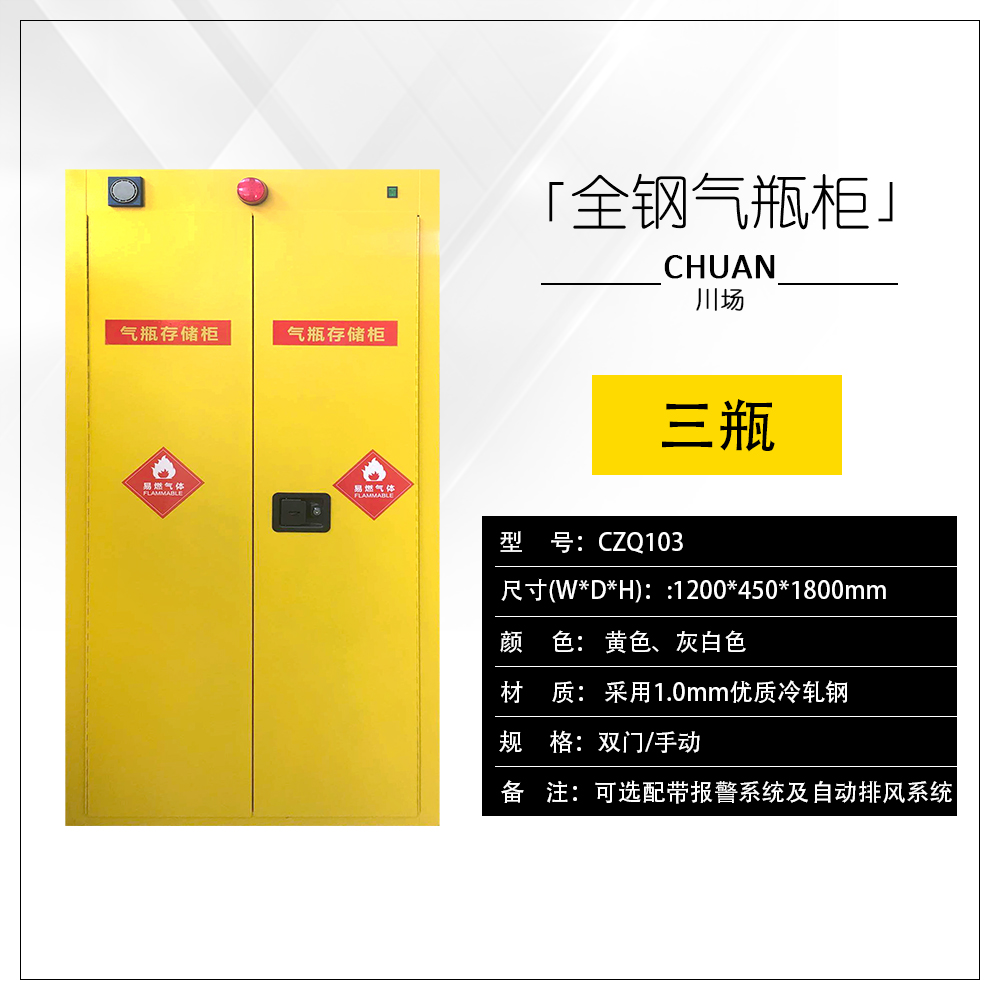 8.聲光報警系統:當柜內傳感器檢測到氣體泄漏時,會自動觸發紅燈閃爍和報警轟鳴聲,同時自動排風。